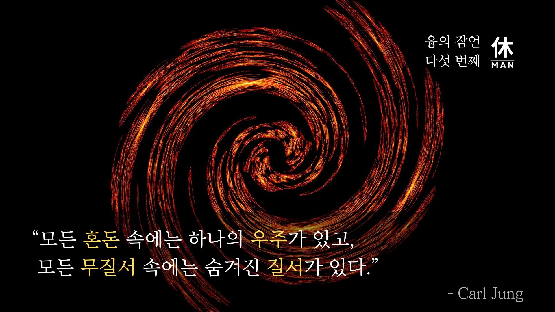 이 잠언을 좀 더 의역하면 이렇게 볼 수도 있습니다. “모든 혼돈 속에는 하나의 우주가 있고 모든 병리에는 숨겨진 순리가 있다.” Dis/order를 병/순리로 번역한 이유가 있습니다. Personality Disorder(성격장애), Mood Disorder(기분장애)와 같이 Disorder는 정신병리학에서 장애 또는 병리를 진단할 때 쓰이는 단어이기 때문입니다. 즉, 융은 병리에도 어떤 숨겨진 의미가 있음을 전하려는 것입니다.