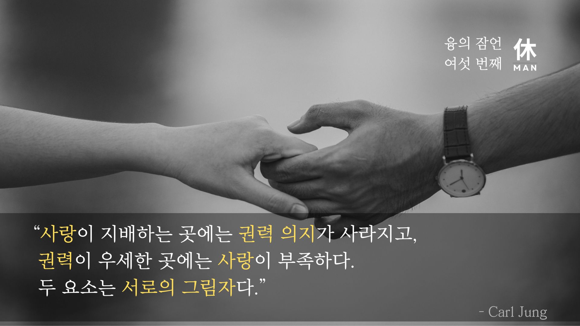 오늘 공유하는 융의 잠언은 단순한 ‘사랑 vs 권력’의 대비가 아니라, 관계에서 사랑과 권력은 서로를 보완하거나 대체하면서 등장하는 심리적 역동임을 말하는 것 같습니다. 사랑이 충분하지 않을 때 사람은 지배·통제·권력으로 자신을 지키려 하고, 반대로 권력 의지가 지나치면 인간적인 친밀감과 애정은 약해지죠. 그래서 융은 권력과 사랑을 서로의 그림자(shadow) 관계로 보았습니다.