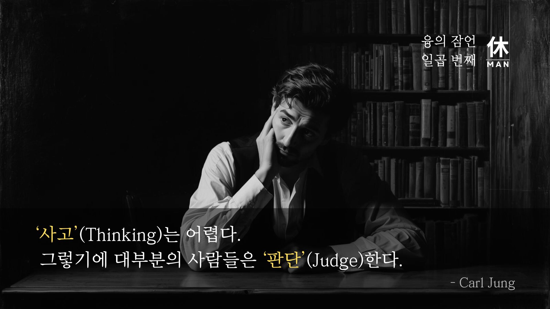 그렇다면 판단은 단순히 그릇된 기준을 적용하여 발생하는 오류일까요? 융은 그렇지 않다고 말합니다. 융의 분석 심리학에서 ‘사고’(Thinking)는 네 가지 주요 심리 기능(사고, 감정, 감각, 직관) 중 하나입니다. 논리와 객관적인 기준을 사용하여 대상의 의미와 관계를 이해하려는 합리적인 기능이죠. 진정한 사고는 힘이 들고, 에너지를 써야 하며, 복잡한 대상을 이해하려는 노력을 필요로 합니다. 융의 관점에서 '판단'(Judging)은 종종 사고의 어려운 과정 없이 내려지는, 성급하고 비합리적인 결론을 의미합니다. 사고가 어려울 때, 사람들은 복잡성을 회피하고 단순화된 결론(판단)을 내림으로써 내적/외적 불안정성을 빠르게 해소하려 합니다.
